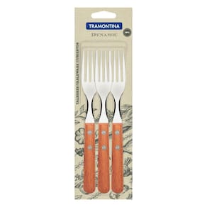 O Conjunto de Garfos de Mesa Tramontina Dynamic com Lâminas em Aço Inox e Cabos de Madeira Natural 3 Peças é perfeito para o uso diário sem perder o estilo. São três garfos produzidos com cabos em madeira natural que garantem qualidade e um visual diferenciado na hora de servir à mesa. Os rebites presentes nas peças são de alumínio. Além disso, são produzidos com lâminas em aço inox, garantindo alta durabilidade e resistência. São peças essenciais para deixar as refeições do dia a dia ainda mais práticas e bonitas! Orientações As lâminas de aço inox contam com maior espessura e uma estampagem do aço que garante maior resistência, evitando deformações. Os cabos são de madeira naturalRebites de alumínio. Características Gerais EAN13 7891112017207 DUN14 17891112017204 NCM 8215.99.10 Peso Líquido 0,0900 kg. Peso Bruto 0,1050 kg. Metragem 0,000268 m³. Dimensões Embalagem (Compr. X Larg. X Alt.) 14x 75x 255 mm. Observações Antes da primeira utilização, lave bem as peças e seque-as. Tenha cuidado ao manusear produtos cortantes e perfurantes e mantenha-os fora do alcance de crianças. Para maior durabilidade dos produtos, recomenda-se secar bem antes de guardar.Para descarte dos produtos e embalagens siga as orientações de reciclagem vigentes.