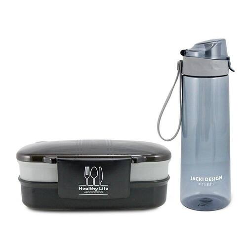 Conjunto de Garrafa e Pote de Marmita 2 andares Preto -