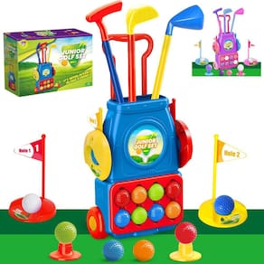 Prepare-se para levar a emoção do campo de golfe direto para o seu quintal com nosso conjunto de golfe júnior para crianças! Projetado pensando em jovens jogadores de golfe, este fantástico conjunto de brinquedos manterá seus filhos entretidos e engajados enquanto aprimoram suas habilidades de golfe. Desenhos coloridos para encantar meninos e meninas dentro e fora do campo. Comece por horas de diversão e aventura!