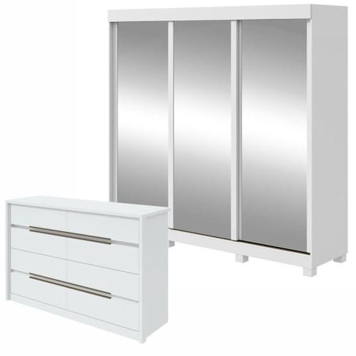 1x Guarda-roupa 3 Portas 3 Gavetas Saion Plus Super Glass com Pés Branco Altura: 225 cm Necessita Montagem: Sim