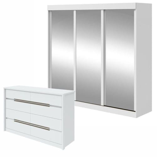 1x Guarda-roupa 3 Portas 3 Gavetas Saion Plus Super Glass Branco Altura: 218 cm Necessita Montagem: Sim
