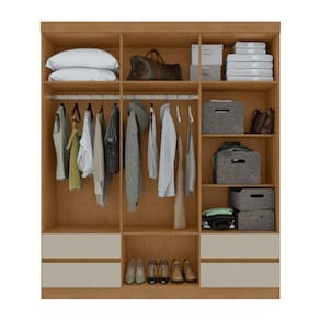 1x Guarda-roupa 6 Portas 4 Gavetas Zeus com Espelho Amêndoa Clean/Off White Largura: 177,5 cm Altura: 205 cm Peso: 102,76 kg Profundidade: 46,75 cm Necessita Montagem: Sim