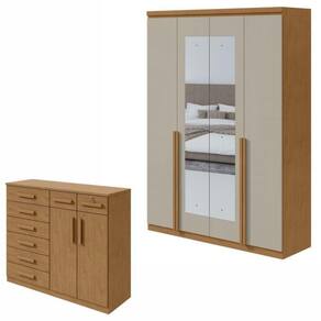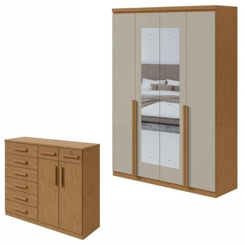1x Guarda-roupa 4 Portas 2 Gavetas 100% Mdf Alonzo com Espelho Amêndoa Clean/Off White Largura: 153,5 cm Altura: 230 cm Peso: 110 kg Necessita Montagem: Sim