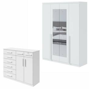 Conjunto de Guarda-Roupa Alonzo 4 portas com espelho e Cômoda Toronto Branco