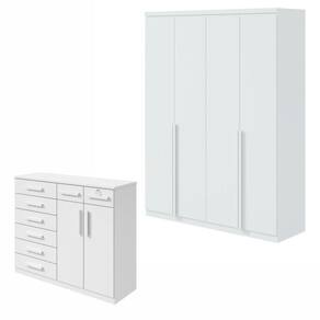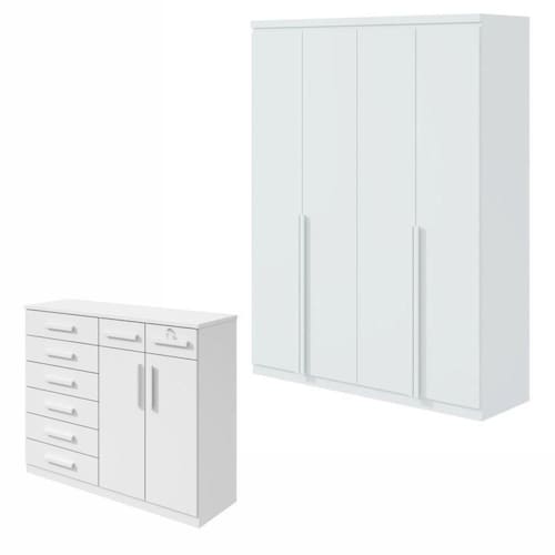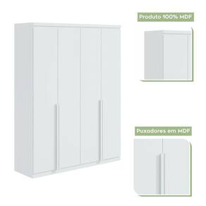 1x Guarda-Roupa Solteiro 4 Portas 2 Gavetas Alonzo Branco Largura: 153,5 cm Altura: 230 cm Peso: 113 kg Necessita Montagem: Sim