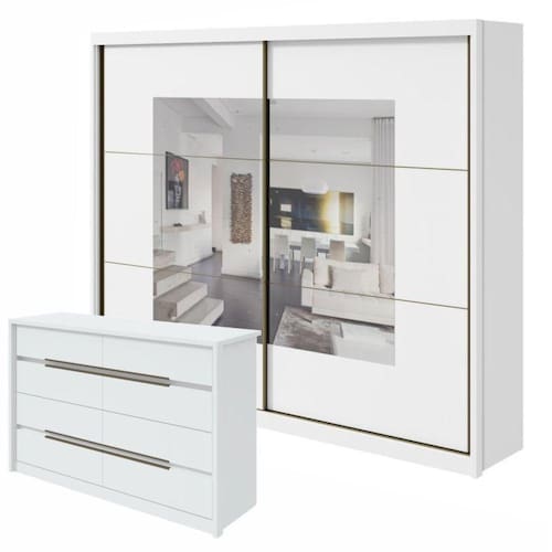 1x Guarda Roupa Casal com Espelho 2 Portas 6 Gavetas Toronto Plus Branco Largura: 269 cm Altura: 237 cm Peso: 253 kg Profundidade: 57 cm Necessita Montagem: Sim