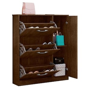 A sapateira é feita em MDP. Capacidade de calçados 18 pares, possui 4 portas sendo 3 delas articuladas.