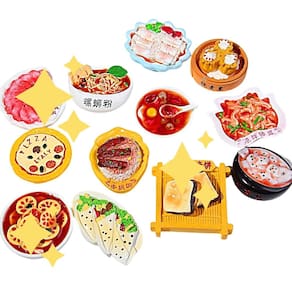 Material: Resina Tamanho: 5,3 x 6 cm Peso: 50 g Design de comida deliciosa: inclui 12 ímãs diferentes com temas gastronômicos, como bolinhos, pizza, macarrão e dim sum, apresentando pratos chineses e internacionais populares em detalhes vibrantes. Construção em resina de alta qualidade: feitos de resina durável, esses ímãs oferecem designs realistas e são perfeitos para adicionar um toque divertido e exclusivo a qualquer espaço. Perfeito para amantes de comida: ideal para quem adora culinária chinesa, entusiastas da comida ou para quem gosta de decoração de cozinha criativa e peculiar. Decorativo e funcional: perfeito para decorar geladeiras, armários ou quadros brancos enquanto guarda fotos, notas e lembranças com segurança. Ótimo conjunto de lembranças: uma lembrança divertida e divertida para quem gosta de cultura gastronômica ou gosta de decorações exclusivas com temas gastronômicos.