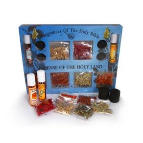 Mirra, Rosa de Sharon, Nard, Jasmin, Almíscar, Mirra. Esta fragrância de incenso aromático da Terra Santa é produzida em Jerusalém. Qualquer visitante de Jerusalém deve reconhecer imediatamente o cheiro desses 5 incensos flutuando pela cidade velha. Esses incensos são baseados em uma combinação de resina, flores e plantas naturais da Terra da Bíblia. Que minha oração seja apresentada diante de ti como incenso; e o levantar das minhas mãos como o sacrifício da tarde. salmo 141: 2
