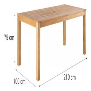 Mesa: Comprimento: 210 cm Largura: 100 cm Altura: 75 cm Cadeiras: Comprimento: 60 cm Largura: 58,5 cm Altura: 85 cm Funcionalidades: