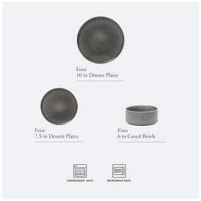 Inspire-se em uma pitoresca cidade costeira, com seu estilo de vida tranquilo e sol radiante, para adicionar elegância às suas refeições. A Coleção de Jantar Solana Coast capta o charme da cidade à beira-mar e o transforma em um conjunto de jantar elegante, ideal tanto para ambientes internos quanto externos. O acabamento de alto brilho reflete a luz do sol nas águas calmas, adicionando um brilho excepcional a cada peça. Feito de argilas terrosas, este conjunto se transforma em uma deslumbrante cerâmica que complementa qualquer mesa e realça a vivacidade de cada prato. Sua fabricação requer um processo intricado, em que as peças são queimadas várias vezes em altas temperaturas para criar uma construção perfeitamente resistente ao desgaste e não porosa. Uma camada de esmalte reativo finaliza o processo, permitindo que cada prato e tigela ganhe vida com variações naturais sutis, garantindo que nenhuma peça seja igual. Com laterais altas e retas para empilhamento fácil e nervuras exteriores para adicionar profundidade e textura, este conjunto equilibra perfeitamente a elegância clássica e o estilo contemporâneo. Como um conjunto de peças deslumbrantes para casa, este conjunto de jantar é um presente de bom gosto para qualquer ocasião, apreciado por sua utilidade prática e apelo decorativo. Seguro para lava-louças e micro-ondas, a Gibson Elite oferece uma fusão elegante de forma e função em uma infinidade de peças de jantar. Este conjunto completo inclui quatro pratos de jantar de 25,4 cm, quatro pratos de sobremesa de 19 cm e quatro tigelas de cereal de 15,24 cm, ideal para serviço para quatro pessoas. Feito de argilas ricas e queimado em altas temperaturas, este durável conjunto de jantar possui uma construção robusta e não porosa para qualidade e elegância duradouras. Cada prato e tigela exibe a combinação perfeita de arte e técnica, com um brilhante esmalte reativo que cria manchas intencionais para intensificar a profundidade de cor e textura. Com variações naturais no design, cada peça tem seu próprio caráter único, tornando-as verdadeiramente exclusivas. Laterais altas e retas criam um design empilhável para economizar espaço de armazenamento, enquanto as nervuras externas acrescentam um detalhe interessante para apresentações de refeições de qualidade de restaurante. Adicione este conjunto à sua lista de presentes ou presenteie familiares, amigos, recém-casados e novos proprietários para comemorar aniversários, casamentos, ocasiões especiais ou marcos do dia a dia.