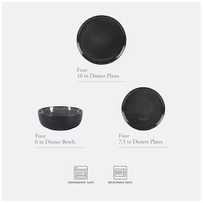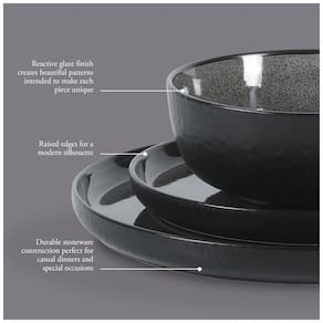 Quando a atmosfera está perfeita e a mesa está posta, tire um momento para apreciar a vista. Inspirado na paisagem panorâmica da Baía Emerald, o Conjunto de Jantar Tahoe Sunset da Gibson Elite captura a jogada de cores cristalinas da natureza nessa paisagem pitoresca. O acabamento de alto brilho lembra o reflexo do sol em águas calmas, conferindo um brilho brilhante a cada peça desta coleção. Argilas terrosas se transformam em belas obras de cerâmica que combinam bem com qualquer ambiente e realçam a vivacidade de qualquer receita. Sua fabricação é um processo árduo, no qual as peças são queimadas várias vezes em altas temperaturas para criar uma construção perfeitamente resistente ao desgaste e não porosa. Por fim, revestidas com acabamento de grés reativo, cada prato e tigela ganha vida com sutis variações naturais, garantindo que nenhuma peça seja igual. Como uma coleção de peças essenciais para o lar, este conjunto de jantar é um presente elegante para qualquer ocasião. Amado tanto por sua utilidade prática quanto por seu apelo decorativo, expressa seu gosto impecável e bons desejos para familiares, amigos, novos proprietários e recém-casados. Pode ser lavado na lava-louças e utilizado no micro-ondas. Gibson Elite oferece uma mistura elegante de forma e função em uma infinidade de louças, utensílios de servir e acessórios de mesa, sendo sofisticado e versátil. QUATRO LUGARES Este conjunto completo inclui quatro pratos de jantar de 25,4 cm, quatro pratos de sobremesa de 19 cm e quatro tigelas de cereal de 15,2 cm. Adequado para um serviço para quatro pessoas e uma mesa repleta de refeições caseiras e conversas autênticas. ARTESANATO DE EXCELÊNCIA Gibson Elite faz parte de uma renomada família de marcas com mais de 40 anos de experiência em aprimorar a experiência de jantar e entretenimento em casa. Produzido a partir de uma rica mistura de argilas e queimado em altas temperaturas, este durável conjunto de jantar possui uma construção em grés espesso e não poroso para qualidade e elegância duradouras. ARTE NA MESA Cada prato e tigela exibem o equilíbrio perfeito entre arte e técnica. Um vidrado reativo brilhante cria manchas intencionais para realçar a profundidade da cor e da textura. Com variações naturais no design, cada peça tem seu próprio caráter único, tornando-as verdadeiramente exclusivas. PRESENTEANDO COM ESTILO Adicione esta coleção à sua lista de presentes ou presenteie familiares, amigos, recém-casados e novos proprietários para comemorar aniversários, casamentos, ocasiões especiais ou marcos do dia a dia. INSTRUÇÕES DE CUIDADO Pode ser lavado na lava-louças e utilizado no micro-ondas.