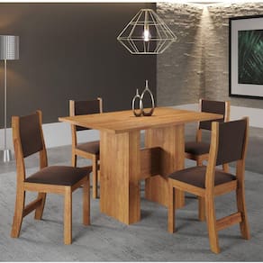 O Conjunto de Jantar Jazz chegou para fazer parte de um dos cantinhos mais queridos da casa. Ele estará presente no dia a dia da sua família, naqueles momentos especiais das refeições. O conjunto é super versátil, podendo ser utilizado tanto na sala de jantar quanto na cozinha. Medida da Mesa (A x L x P): 78,5x120x80cm Peso da Mesa: 26,4 kg Mesa suporta até: 50.0000 Acabamento da Cadeira/Banco: Pintura UV Acabamento da Mesa: Pintura UV Altura do Conjunto: 78.5 Ambiente Principal: Sala de Jantar Cadeira/Banco Estofada: Encosto e Assento Estofados Cadeira/Banco estofada: Encosto e Assento Estofados Cadeira/Banco suporta até: 80.0000 codigo_ean: 7909903468111 Complexidade da Montagem: Média: pode ser montado por mais de uma pessoa e/ou necessite de maior conhecimento para montagem Cor: Mel/Bombom Cor do Produto: Mel/Bombom De Canto (Canto Alemão): Não Enchimento do Assento: Espuma D-16 Enchimento do Encosto: Espuma D-12 Escala de Brilho: Semi-Brilho Espessura do Tampo: 25 mm Estrutura do Assento: MDP/Espuma Estrutura do Encosto: MDP/Espuma Formato do Tampo: Retangular Informações Complementares: Sala de Jantar 4 lugares Itens Inclusos: 1 Mesa, 4 Cadeiras, Manual de Montagem e Kit Ferragens Manual de Montagem e Instalação: https://product-hub-prd.madeiramadeira.com.br/874651/documents/8c058bdf-2248-49f5-b857-c71e12a14ccb88manualdemontagemsalajazz.pdf Material da Base da Mesa: MDP Material da Estrutura da Cadeira: MDF/MDP Material do Tampo: MDP Material Principal: MDF/MDP Material Principal das Cadeiras/Bancos: MDF/MDP Medida da Cadeira/Banco (A x L x P): 89x38,7x51,5cm Medida do Tampo (L x C x E): 120x80x2,5cm Mesa Extensível: Não Necessita Montagem: Sim Origem do Produto: Nacional Peso da Cadeira/Banco: 5,9 kg Possui Apoio para Braços: Não Possui Apoio Para os Pés: Não Possui Prateleiras: Não Possui Vidro: Não Quantidade de Cadeiras: 4 Quantidade de Lugares: 04 Recomendações de Uso, Manutenção e Limpeza: Limpar com pano levemente umedecido com água Revestimento da Cadeira/Banco: Veludo Sistema de Montagem: Parafusos, cavilhas Tipo de Assento: Fixo Tipo de Encosto: Fixo Ean: 7909903468111