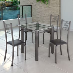 Quer deixar sua casa completa? Uma dica bacana de como transformar o seu lar, deixando-o mais receptivo e bonito? Então você precisa de móveis indispensáveis e deixar seu lar muito mais aconchegante, receptivo e sempre disponível para receber a visita de amigos, familiares e convidados. Você vai se apaixonar por este incrível Conjunto de Mesa com 4 Cadeiras Dany. Ideal para cozinha, ele é a melhor opção para completar o espaço. Aproveite!! Medida da Mesa (A x L x P): 75 cm x 75 cm x 75 cm Peso da Mesa: 12,6 kg Mesa suporta até: 8.0000 Acabamento da Cadeira/Banco: Pintura Texturizada Acabamento da Mesa: Pintura Texturizada Ambiente Principal: Cozinha Cadeira/Banco estofada: Somente Assento Estofado Cadeira/Banco suporta até: 120.0000 codigo_ean: 7909903360767 Complexidade da Montagem: Média: pode ser montado por mais de uma pessoa e/ou necessite de maior conhecimento para montagem Cor: Preto Liso/Mart Prata Cor do Produto: Preto Liso/Mart Prata Escala de Brilho: Semi-Brilho Espessura do Tampo: 6 mm Itens Inclusos: 1 Mesa, 4 Cadeiras, Kit Ferragens e Manual de Montagem Linha ou Coleção: Sara Manual de Especificação Técnica: https://product-hub-prd.madeiramadeira.com.br/860724/documents/18df1499-82db-4429-8087-93afaa626973parasaladejantarv02yescasa.pdf Manual de Montagem e Instalação: https://product-hub-prd.madeiramadeira.com.br/860724/documents/3b970480-7338-4be0-bc24-1cf813480283idrosaladejantarv02yescasa.pdf Manutenção: Pano levemente umedecido e pano seco. Não utilizar produtos de limpeza abrasivos. Material da Base da Mesa: Aço Material da Estrutura da Cadeira: Aço Material do Tampo: Vidro Medida da Base (A x L x P): 74,3 cm x 73 cm x 54 cm Medida da Cadeira/Banco (A x L x P): 95 cm x 40 cm x 37 cm Medida do Tampo (L x C x E): 75 cm x 75 cm x 0,6 cm Necessita Montagem: Sim Origem do Produto: Nacional Peso da Cadeira/Banco: 2,94 kg Possui Apoio Para os Pés: Não Quantidade de Cadeiras: 4 Quantidade de Lugares: 04 Recomendações de Uso, Manutenção e Limpeza: Pano levemente umedecido e pano seco. Não utilizar produtos de limpeza abrasivos. Sistema de Montagem: Parafusos Vidro Temperado: Sim