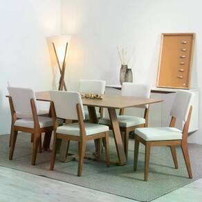 Conjunto composto por 1 Mesa de Jantar e 6 Cadeiras.