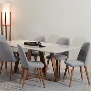 Especificações: Conjunto composto por 1 Mesa de Jantar e 6 Cadeiras.