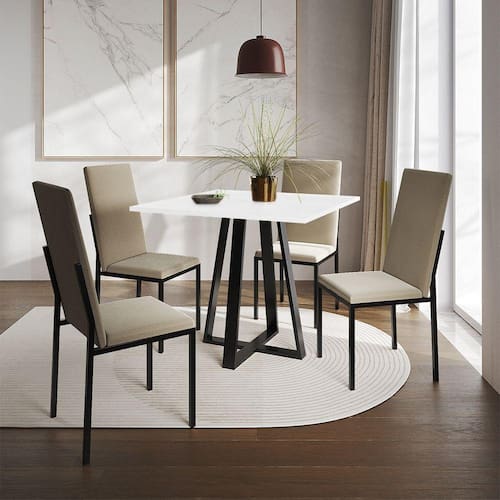 Conjunto De Jantar Mesa Mônaco Premium 90cm Branca Com 4 Cadeiras Estofadas Bege - Cor: Preto