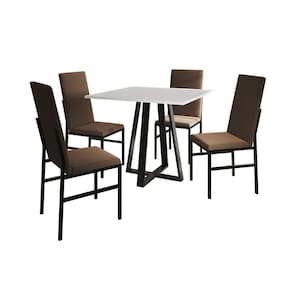 Conjunto de Jantar Mesa Mônaco Premium 90cm Branca com 4 Cadeiras Estofadas Marrom - Preto