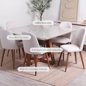 Especificações: Conjunto composto por 1 Mesa de Jantar e 6 Cadeiras.
