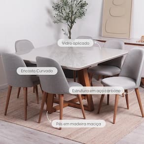 Especificações: Conjunto composto por 1 Mesa de Jantar e 6 Cadeiras.