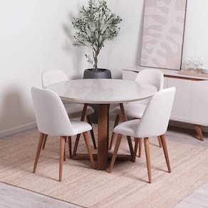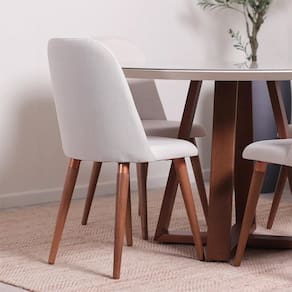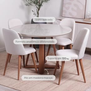 Conjunto de Jantar Mesa Redonda com Vidro Bennett 115 cm 4 Cadeiras New Drop - Natural c/ Bege - Off White
