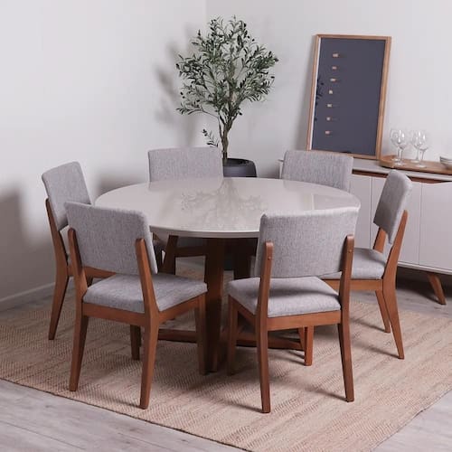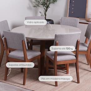 Especificações: Conjunto composto por 1 Mesa de Jantar e 6 Cadeiras.