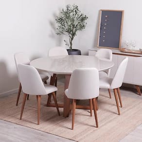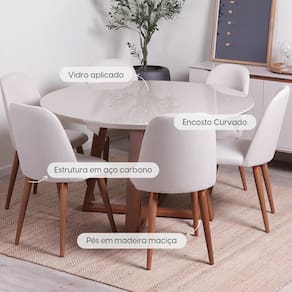 Madeira maciça | MDF | VidroEspecificações: Conjunto composto por 1 Mesa de Jantar e 6 Cadeiras.