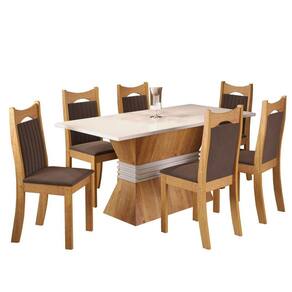 A Sala de Jantar Chile tem design moderno, perfeito para reunir a família e os amigos ao redor de uma mesa sofisticada e elegante que proporcionará aos convidados situações mais agradáveis e descontraídas Medida da Mesa (A x L x P): A:82,7 x l:160 x P:80cm Peso da Mesa: 51,1 kg Mesa suporta até: 50.0000 Acabamento da Cadeira/Banco: Pintura UV Acabamento da Mesa: Pintura UV Acompanha Manual de Instalação: Sim Altura do Conjunto: 98.5 Ambiente Principal: Sala de Jantar Cadeira/Banco estofada: Encosto e Assento Estofados Cadeira/Banco Estofada: Encosto e Assento Estofados Cadeira/Banco suporta até: 90.0000 codigo_ean: 7909903467756 Complexidade da Montagem: Média: pode ser montado por mais de uma pessoa e/ou necessite de maior conhecimento para montagem Cor: Mel/Blonde/Bombom Cor do Produto: Mel/Blonde/Bombom De Canto (Canto Alemão): Não Enchimento do Assento: Espuma D-16 Enchimento do Encosto: Espuma D-12 Escala de Brilho: Semi-Brilho Espessura do Tampo: 25 mm Estrutura do Assento: MDP/Espuma Formato do Tampo: Retangular Informações Complementares: Sala de Jantar 6 lugares Itens Inclusos: 1 Mesa, 6 Cadeiras, Manual de Montagem e Kit Ferragens Manual de Montagem e Instalação: https://product-hub-prd.madeiramadeira.com.br/875391/documents/c634c6a4-9a94-462c-afcd-98422cd1a547236basesofisticcomcaddalas.pdf Material da Base da Mesa: MDF/MDP Material da Estrutura da Cadeira: MDF/MDP Material do Tampo: MDP Material Principal: MDF/MDP Material Principal das Cadeiras/Bancos: MDF/MDP Medida da Cadeira/Banco (A x L x P): A:98,5 x L:38 x P:50,2cm Medida do Tampo (L x C x E): 160x80x2,5cm Mesa Extensível: Não Necessita Montagem: Sim Origem do Produto: Nacional Peso da Cadeira/Banco: 6,9 kg Possui Apoio Para os Pés: Não Possui Vidro: Não Quantidade de Cadeiras: 6 Quantidade de Lugares: 06 Recomendações de Uso, Manutenção e Limpeza: Limpar com pano levemente umedecido com água Revestimento da Cadeira/Banco: Veludo Sistema de Montagem: Parafusos, cavilhas Tipo de Assento: Fixo Tipo de Encosto: Fixo Ean: 7909903467756