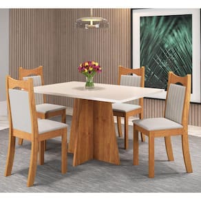 A Sala de Jantar LAISA tem design moderno, perfeito para reunir a família e os amigos ao redor de uma mesa sofisticada e elegante que proporcionará aos convidados situações mais agradáveis e descontraídas Medida da Mesa (A x L x P): 78,1x120x80cm Peso da Mesa: 29,7 kg Mesa suporta até: 50.0000 Acabamento da Cadeira/Banco: Pintura UV Acabamento da Mesa: Pintura UV Altura do Conjunto: 98.5 Ambiente Principal: Sala de Jantar Cadeira/Banco estofada: Encosto e Assento Estofados Cadeira/Banco Estofada: Encosto e Assento Estofados Cadeira/Banco suporta até: 90.0000 codigo_ean: 7909903470176 Complexidade da Montagem: Média: pode ser montado por mais de uma pessoa e/ou necessite de maior conhecimento para montagem Cor: Mel/Blonde/Marfim Cor do Produto: Mel/Blonde/Marfim De Canto (Canto Alemão): Não Enchimento do Assento: Espuma D-16 Enchimento do Encosto: Espuma D-12 Escala de Brilho: Semi-Brilho Espessura do Tampo: 25 mm Estrutura do Assento: MDP/Espuma Estrutura do Encosto: MDP/Espuma Formato do Tampo: Retangular Informações Complementares: Sala de Jantar 4 lugares Itens Inclusos: 1 Mesa, 4 Cadeiras, Manual de Montagem e Kit Ferragens Manual de Montagem e Instalação: https://product-hub-prd.madeiramadeira.com.br/875606/documents/1ba58c1e-e04f-471c-94c6-f08e7fb115396126mesapassioncomcaddalas.pdf Material da Base da Mesa: MDP Material da Estrutura da Cadeira: MDF/MDP Material do Tampo: MDP Material Principal: MDF/MDP Material Principal das Cadeiras/Bancos: MDF/MDP Medida da Cadeira/Banco (A x L x P): 98,5x38x50,2cm Medida do Tampo (L x C x E): 120x80x2,5cm Mesa Extensível: Não Necessita Montagem: Sim Origem do Produto: Nacional Peso da Cadeira/Banco: 6,9 kg Possui Apoio Para os Pés: Não Possui Vidro: Não Quantidade de Cadeiras: 4 Quantidade de Lugares: 04 Recomendações de Uso, Manutenção e Limpeza: Limpar com pano levemente umedecido com água Revestimento da Cadeira/Banco: Veludo Sistema de Montagem: Parafusos, cavilhas Ean: 7909903470176