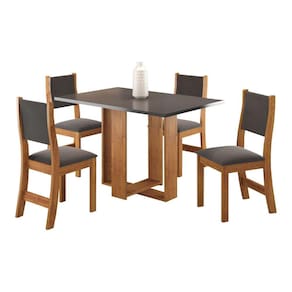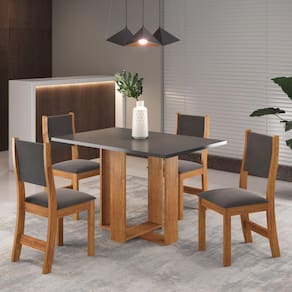 Conjunto de Jantar Mesa Retangular Romantic com 4 Cadeiras Sol Mel/Cinza Brilho/Grafite