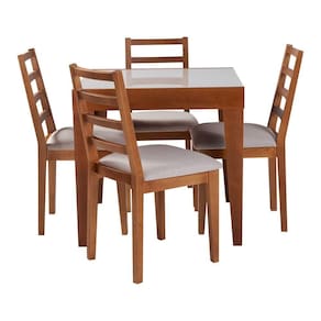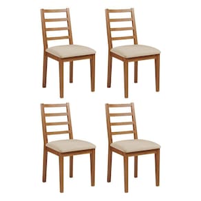 Conjunto de Jantar Mesa Tock 80cm com 4 Cadeiras Aline Linho Bege - Mel