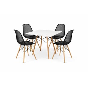 O design minimalista e atemporal se adapta perfeitamente a diversos estilos de decoração, enquanto as dimensões compactas tornam este conjunto ideal para espaços menores sem comprometer o conforto. As cadeiras foram projetadas para máximo conforto durante refeições prolongadas, com seu assento ergonômico e encosto ventilado. A mesa possui superfície lisa e durável, perfeita para uso diário, enquanto mantém uma aparência sofisticada que eleva o visual de qualquer ambiente. Cadeiras: Altura: 82cm Largura: 47cm Profundidade: 50cm Altura do Assento: 45cm Peso máximo suportado: 120kg Quantidade: 4 cadeiras inclusas Mesa: Altura: 74cm Tampo: 80x80cm Garantia de 90 dias contra defeitos de fábrica