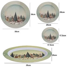 Celebre o Natal com charme e praticidade com o Jogo de Jantar 10 Peças em Melamina. Com estampas natalinas encantadoras e variadas — Floresta de inverno, Quebra-Nozes, Feliz Natal Verde e Feliz Natal Vermelho — ele traz um toque festivo e acolhedor para a sua mesa.Fabricado em melamina de alta qualidade, o conjunto é leve, resistente e fácil de limpar, ideal para uso no dia a dia ou para compor uma mesa temática especial nas festas de fim de ano.Leve o espírito natalino à sua mesa e surpreenda seus convidados com um jogo de jantar que une beleza, praticidade e durabilidade.Características:Material: Melamina (não vai ao micro-ondas)Leve e resistente a quedasSuperfície lisa e fácil de limparEstampas natalinas exclusivas que encantam em qualquer ocasiãoComposição do Jogo (10 peças):1 Petisqueira Oval – 35 x 25 cm1 Petisqueira Redonda – 35 cm de diâmetro4 Pratos de Jantar – 25 cm de diâmetro4 Pratos de Sobremesa – 17,5 cm de diâmetro Marca: Não Informado