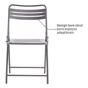 Resumo das caracteristicas e especificacoes: Conjunto de moveis para jardim, tipo de conjunto: mesa e cadeira, material: aco, cor: cinza, para 2 pessoas, uso indicado: para estar, areas indicadas: externas e externas com cobertura, estilo: contemporaneo, quantidade de pecas: 3, mesa com tampo de metal, formato da mesa: retangular, dimensao da mesa: 75x45x120, cadeiras dobraveis, dimensao da cadeira: 85x49x55, montagem simples, garantia do fabricante: 12 anos."