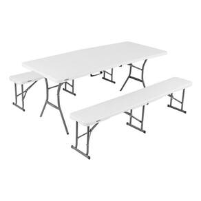 Conjunto De Jardim 3 Pecas Mesa E Bancos Branco 6 Lugares