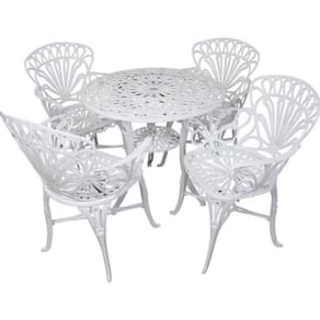 Seja para desfrutar de momentos de relaxamento ao ar livre ou para receber amigos e familiares em um ambiente acolhedor, nossos móveis em alumínio fundido são a escolha perfeita. Desfrute da elegância intemporal combinada com a durabilidade moderna e transforme seu espaço exterior em um refúgio de estilo e conforto.