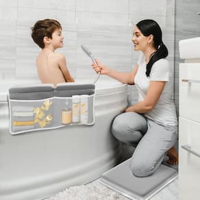 Banhar seu pequeno pode ser uma tarefa desafiadora, mas o conjunto de joelheira e descanso de cotovelo para banho de bebê está aqui para torná-lo mais confortável e agradável. Este conjunto inovador inclui uma almofada de joelho espessa e acolchoada que oferece suporte ideal para seus joelhos e uma almofada de descanso de cotovelo de pelúcia, garantindo que você mantenha a postura adequada durante toda a rotina do banho. As superfícies antiderrapantes mantêm você estável, enquanto os materiais à prova d'água e fáceis de limpar garantem durabilidade duradoura. Com este conjunto, você pode se concentrar em criar laços com seu bebê sem forçar suas costas ou joelhos. Projetado com o conforto do seu bebê e do seu bebê em mente, este conjunto é um item essencial para qualquer novo pai. - Joelho de banho – Conforto na hora do banho: dê aos seus braços e joelhos uma almofada para descansar enquanto você dá banho ao seu pequeno. Esta joelheira de banho premium e almofada de descanso de cotovelo garante o conforto do bebê e dos pais! - Assento de banho de bebê – instalação sem complicações: não há necessidade de fazer furos na parede do banheiro para usar este conjunto de joelheira e almofada de braço. O descanso de cotovelo para banheira é equipado com ventosas que o mantêm no lugar. - Tapete de banho para bebês – Organizador que economiza espaço: mantenha todos os itens essenciais de banho do seu filho convenientemente em um só lugar. A cotoveleira está equipada com compartimentos de armazenamento para xampu, sabonete corporal e brinquedos de banho do seu filho. Leve e facilmente armazenada, perfeita para viagens ou banheiros pequenos. - Descanso de joelho e cotovelo - Fácil de limpar: Limpar o tapete de banho do bebê e o descanso de cotovelo é muito fácil. Basta limpar suavemente nosso assento de banho com um pano úmido ou colocar na máquina de lavar para restaurar sua nova aparência e sensação. Materiais à prova d'água permitem uma limpeza rápida após o uso. - Assento de banho para bebês – Presente atencioso: um presente adequado para dar a uma mãe ou pai em uma ocasião especial. Nosso conjunto de banho de bebê será um excelente presente para chás de bebê, aniversários, Natal e muito mais. Adequado para uso na banheira ou chuveiro, acomodando diferentes layouts de banheiro.