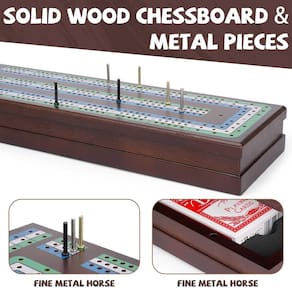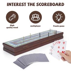 Eleve suas noites de jogos e reuniões de família com este tabuleiro de cribbage de madeira premium, uma mistura atemporal de artesanato, funcionalidade e portabilidade. Projetado para até três jogadores, este conjunto de cribbage apresenta três faixas coloridas em uma superfície lisa e sem rebarbas, garantindo uma experiência de jogo agradável e competitiva. Construído a partir de madeira durável, o tabuleiro de cribbage é construído para durar, com uma aparência elegante e clássica que o torna uma peça de destaque em qualquer coleção de jogos. Sua espaçosa gaveta de armazenamento integrada organiza perfeitamente dois baralhos de baralho e nove pinos de metal de alta qualidade, facilitando a configuração e a limpeza. A trava magnética garante que todos os componentes permaneçam armazenados com segurança, proporcionando tranquilidade ao viajar ou armazenar o jogo. Com suas dimensões compactas de 38 cm C x 13 cm L x 5 cm A, esta tábua de berço leve e portátil é perfeita para entretenimento em movimento. Esteja você em casa, em um acampamento ou desfrutando de férias, esta prancha cabe facilmente em bolsas e mochilas, permitindo que você leve a diversão aonde quer que vá. Participe do clássico jogo de estratégia de berço, onde os jogadores correm para marcar 121 pontos coletando pontos de suas mãos. Combinando estratégia, habilidade e sorte, o cribbage é uma excelente maneira de fortalecer o pensamento crítico, melhorar as habilidades matemáticas e desfrutar de tempo de qualidade com seus entes queridos.
