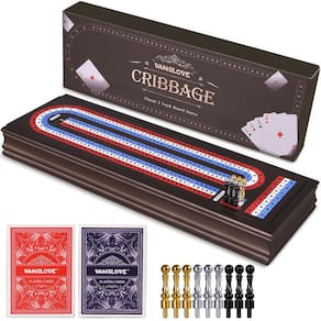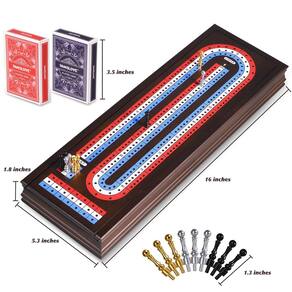 Conjunto de jogos de tabuleiro VAMSLOVE de 16" — perfeito para entretenimento familiar e viagens. Durante reuniões familiares calorosas ou viagens de lazer, o conjunto de jogos de tabuleiro VAMSLOVE de 16 polegadas trará alegria e desafios infinitos . Tábua de madeira premium, artesanato requintado: a placa é feita de madeira de alta qualidade, com dimensões de 16" x 5,5" x 1,9", sendo resistente e durável com uma sensação total de textura. Seu placar de 3 faixas cuidadosamente projetado fornece um registro claro e preciso do progresso do seu jogo, tornando cada pontuação fácil de ver em um piscar de olhos. Design cuidadoso, armazenamento conveniente: existem grandes slots no tabuleiro, especialmente projetados para armazenar 2 cartas de baralho e 9 pinos de metal (incluindo ouro, prata e preto), facilitando o acesso e o armazenamento durante o jogo, evitando a perda de peças e tornando o processo do jogo mais suave e organizado. Acessórios completos, com instruções incluídas: Este conjunto inclui todos os acessórios necessários para o jogo. Mesmo que você seja iniciante no cribbage, não precisa se preocupar. Incluímos instruções detalhadas do jogo, permitindo que você comece rapidamente e domine facilmente as regras do jogo e comece uma noite de jogo feliz com sua família e amigos. Se você está passando momentos felizes com sua família em casa ou passando momentos de lazer durante uma viagem, o conjunto de jogos de tabuleiro VAMSLOVE cribbage é a escolha ideal. Seu belo design, materiais de alta qualidade e acessórios ricos proporcionarão uma experiência de jogo de alta qualidade e se tornarão um clássico em sua coleção de entretenimento familiar. - Placar clássico de 3 faixas: O quadro VAMSLOVE Cribbage apresenta uma construção de tampa deslizante, garantindo uma experiência de jogo durável e duradoura. Com seu tabuleiro de cribbage de 3 faixas, este tabuleiro Cribbage permite que até 3 jogadores aproveitem o jogo simultaneamente, tornando-o ideal para noites de jogos em família ou reuniões com amigos - Armazenamento grande: O tabuleiro Cribbage é equipado com slots grandes que armazenam convenientemente 2 baralhos de cartas e 9 pinos de metal, garantindo fácil acesso aos componentes necessários durante o jogo. E você não se preocupe mais em perder o jogo de compartimentos - Qualidade Premium: Composta por 3 cores diferentes (ouro, prata e preto) de trilhos contínuos claramente marcados, o cribbage de madeira tem uma superfície lisa e sem rebarbas. E o feltro na parte inferior evita o escorregamento durante o jogo. O design da tampa deslizante facilita o fechamento do placar e evitar que os acessórios se percam. Portátil e fácil de transportar: Dimensão do cribbage: 16" x 5,5" x 1,9". Projetada com design portátil, a placa VAMSLOVE Cribbage é compacta e leve, tornando-a perfeita para viagens ou jogos ao ar livre. Leve o jogo com você aonde quer que vá e desfrute de horas de entretenimento - COMO JOGAR: Cada jogador corre em direção ao final do tabuleiro coletando pontos a cada rodada da mão de cartas que recebe e o objetivo de Cribbage é ser o primeiro jogador a marcar um número alvo de pontos 121, um jogo de estratégia perfeito cheio de sorte e habilidade