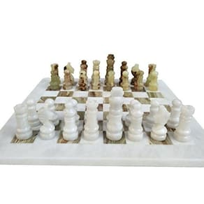 Os produtos Lavish Deals são projetados com uma combinação perfeita de ideias de decoração de casa e sua utilidade. Estamos fortemente comprometidos em melhorar sua qualidade de vida, fornecendo decoração de casa de alta qualidade, decorações exclusivas e de qualidade premium a preços acessíveis e acreditando em tornar seus momentos inestimáveis. Este conjunto de xadrez de mármore fala volume de requinte e utilidade. Este mini conjunto de xadrez para decoração de casa é feito de ônix da melhor qualidade, enquanto a pedra de mármore os acompanha melhor para tornar o produto um item que vale a pena gastar dinheiro. O jogo de tabuleiro de mármore de 30 cm vem com um conjunto completo de 32 figuras de xadrez que certamente levam a emoção ao próximo nível e convertem um jogo de tabuleiro sem damas em um campo de guerra. Esta decoração de casa de xadrez é totalmente feita à mão e vem sob uma embalagem segura e frágil para garantir sua entrega perfeita sem nenhum dano. A altura do rei deve ser de 7 cm, onde o peso aproximado do tabuleiro de xadrez é de 6,4 kg. Os conjuntos de xadrez também podem ser apresentados como um presente para um ente querido que é um amante de xadrez louco. Certamente, pode fazer o dia deles. Além disso, também serve como decoração inovadora para casa, onde todas as noites, a família pode brincar em busca de tempo de qualidade. Uma coisa a observar, pois é feito de mármore, que é uma pedra natural, portanto, cada produto pode ter exclusividade em termos de cor e tamanho. - ? Feito de alta qualidade: o conjunto de xadrez é uma combinação perfeita de beleza e utilidade. Este jogo de tabuleiro clássico é feito com matéria-prima excepcional de ônix de mármore. Esta decoração de casa exclusiva desempenha a função de adicionar beleza extra a um produto - ? Tamanho: conjunto de xadrez moderno de 30,5 cm, a bela decoração da casa é feita à mão por nosso artesão habilidoso, garantindo a superioridade da qualidade do produto. Esta decoração interna vem em uma embalagem segura e frágil. - ? Peso aproximado de 6,4 kg, este conjunto de xadrez de mármore é suficiente para levar para fora sem complicações. Jogue um jogo de tabuleiro com seus filhos em casa, seu colega de trabalho no café por muito tempo de qualidade. Este conjunto de xadrez ideal para decoração de casa garantirá longas horas de diversão saudável e educativa para sua família - ? Este conjunto de tabuleiro de xadrez de mármore vem com 32 bonecos de xadrez ônix branco e verde também. Além disso, estes presentes de decoração de casa também podem ser apresentados ao seu ente querido. Além disso, este conjunto de xadrez exclusivo será uma adição inovadora à sua coleção única das melhores decorações de casa. - ? Você pode entrar em contato conosco para qualquer serviço antes da compra até depois da venda para qualquer consulta e consultas