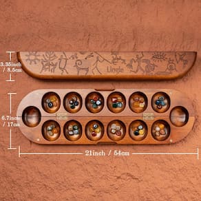 Mergulhe na rica herança cultural da África com nosso conjunto de madeira Mancala com uma tábua articulada de design complexo feito de madeira verdadeira. Este conjunto vem completo com 48 pedras naturais misturadas, adicionando um toque autêntico à sua experiência de jogo. O design dobrável o torna conveniente para carregar e armazenar, perfeito para noites de jogos com amigos e familiares. Embarque em uma jornada de estratégia e habilidade enquanto joga este jogo tradicional africano, adornado com petróglifos autênticos para uma camada extra de imersão cultural. - Petroglifos africanos: Mergulhe na rica história de Mancala com uma tábua adornada com petróglifos africanos autênticos. Cada design reflete as origens antigas do jogo, adicionando um toque cultural e histórico à sua experiência de jogo. - Materiais de qualidade premium: este conjunto Mancala de luxo apresenta uma placa articulada de madeira real que é durável e elegante. As pedras preciosas naturais misturadas não são apenas visualmente deslumbrantes, mas também proporcionam uma experiência tátil satisfatória durante o jogo. - Condição vencedora: quando a área de armazenamento de um jogador está completamente vazia no final do jogo. O outro jogador então coloca todas as pedras restantes em sua própria Mancala. O vencedor é o jogador com mais pedras preciosas em sua área de armazenamento. - Design dobrável e portátil: projetado para conveniência, o quadro se dobra facilmente, tornando-o perfeito para viagens ou armazenamento. Esteja você em casa ou em movimento, você pode desfrutar de um jogo de Mancala a qualquer hora, em qualquer lugar. - Perfeito para estratégia de dois jogadores: Mancala é um jogo de estratégia atemporal perfeito para dois jogadores. Ajuda a melhorar o pensamento crítico e as habilidades de planejamento estratégico, tornando-o uma atividade divertida e educacional para todas as idades.