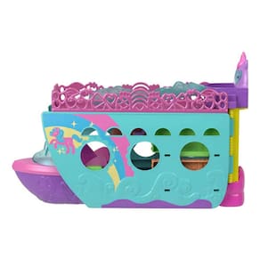 Este brinquedo inclui um barco de brinquedo com temática de unicórnio, que oferece várias opções de brincadeiras com água. Com armário giratório, uma boneca Polly de 7 cm (que muda de cor no maiô quando molhada) e vários acessórios, o conjunto garante diversão para as crianças a partir de 4 anos. Ele se abre para revelar duas piscinas, um toboágua e um espaço perfeito para a Polly e seus amigos se divertirem. As crianças podem interagir com os dois barcos, a boia de flamingo, o balanço de fatias de melancia e muitos outros acessórios para criar uma série de brincadeiras.