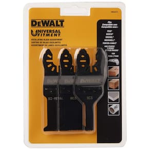 Oscilante DEWALT Dwa4215, 3 peças - A lâmina de ferramenta oscilante DEWALT possui encaixe universal para uso em todas as principais marcas (sem necessidade de adaptador) - Os acessórios da ferramenta oscilante DEWALT incluem DWA4203, DWA4210, DWA4217 - Este é um conjunto variado de lâminas para várias aplicações.