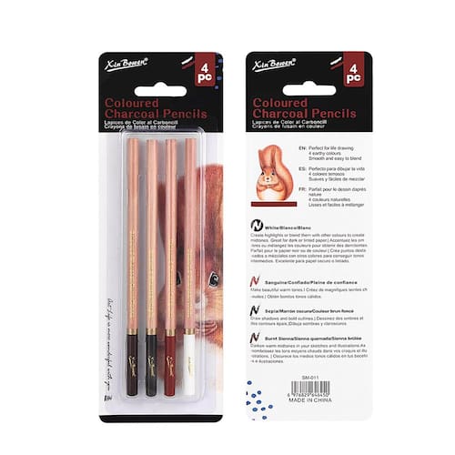 Material: madeira Dimensões: Tamanho da caixa: 25,5 cm × 8,5 cm, comprimento do lápis: 17,4 cm × 0,7 cm Peso: 53 g Conjunto completo de carvão colorido: este conjunto inclui quatro lápis de carvão coloridos essenciais — branco, sanguíneo, sépia e siena queimada — perfeitos para adicionar destaques, sombras e tons ricos à sua obra de arte. Mistura suave e fácil: esses lápis de carvão de alta qualidade combinam perfeitamente, tornando-os ideais para criar sombras naturais, destaques e detalhes finos em esboços, retratos e ilustrações. Versátil para várias técnicas: perfeitos para desenhar, esboçar, sombrear e realçar, esses lápis oferecem uso versátil para uma ampla variedade de projetos artísticos, de artes plásticas a esboços casuais. Ótimo para artistas e iniciantes: seja você um artista experiente ou iniciante, este conjunto ajuda você a aprimorar seu trabalho com tons vibrantes e ricos e recursos de mesclagem de nível profissional. Conveniente e portátil: os lápis vêm em uma embalagem compacta e organizada, facilitando o armazenamento e o transporte de seu conjunto de carvão para aulas de arte, workshops ou projetos de desenho em qualquer lugar.