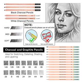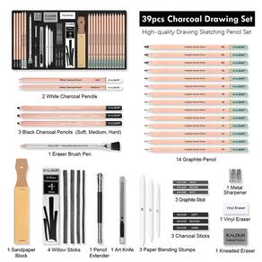 Material: madeira Tamanho: 42 cm × 23 cm × 2,4 cm Peso: 400 g Conjunto abrangente de esboços de 39 peças: este conjunto premium inclui uma ampla variedade de lápis de grafite (de H a 8B), bastões de carvão, tocos de mistura e borrachas para atender a todas as suas necessidades de desenho e desenho. Suprimentos de desenho de alta qualidade: com materiais de nível profissional, como lápis de grafite macios e duros, carvão de salgueiro e borrachas de borracha amassada, garantindo resultados suaves e limpos em todos os seus esboços. Perfeito para artistas e iniciantes: ideal para artistas profissionais e iniciantes, este conjunto oferece tudo o que é necessário para criar esboços detalhados, sombreamentos e desenhos complexos. Portátil e organizado: o conjunto vem em um estojo compacto e resistente (42 cm x 23 cm x 2,4 cm) para manter todas as suas ferramentas organizadas, facilitando o transporte para sessões de desenho ou aulas. Versátil e prático: adequado para uma ampla variedade de mídias e técnicas, este kit é perfeito para esboçar, sombrear e criar obras de arte impressionantes em vários estilos, de retratos a paisagens.