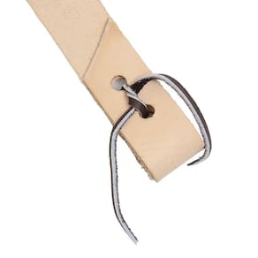 Conjunto Látego e Contra Látego A Pantaneira fabricado em couro na cor Natural. O contra látego possui couro duplado com costuras reforçadas, fivela de aço inox modelo Coração e passador trançado em couro meio curtume e o látego é fixado por tento de couro.