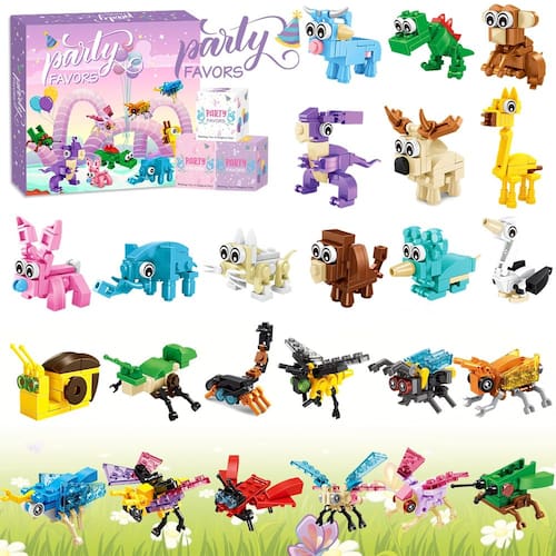 - Lembranças de festa super valiosas: os sacos de presentes para crianças incluem 24 pacotes 72 tipos de blocos de construção 3 em 1. 24 conjuntos de brinquedos para montar incluem cachorro, gato, coelho, girafa, elefante, borboleta, abelha, formiga, caracol, etc. Todos eles podem mudar em 3 formas diferentes, as crianças podem montar totalmente 72 formas exclusivas! De crocodilo a dinossauro, estas lembrancinhas de festa para crianças de 6 a 12 anos proporcionam imaginação infinita