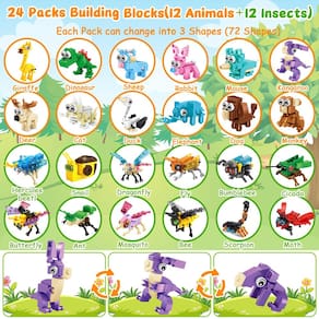 24 pacotes de blocos de construção de animais e insetos. (12 animais + 12 insetos)