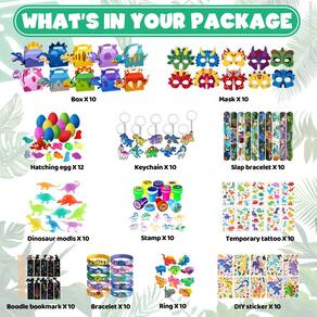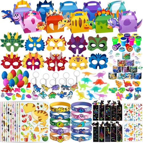lembrancinhas de festa de dinossauro - Melhor presente para as crianças: apenas um conjunto é suficiente para toda a selva, lembrancinhas de festa de aniversário de dinossauro, inclui 10 caixas de presente, 10 máscaras, 10 pulseiras, 10 pulseiras de silicone, 10 marcadores, 10 carimbos, 10 chaveiros, 10 adesivos DIY, 10 anéis, 12 peças de brinquedos de ovos de dinossauro, 10 peças de adesivos de tatuagem de dinossauro, 10 peças Dinossauros que brilham no escuro Melhor para encher os sacos de presente de aniversário. - Grande mercadoria suprema: esteja pronto para dar a festa temática de dinossauros, fazendo todos gritarem! Este kit de suprimentos de festa de aniversário legal e prático é suficiente para fornecer a você as necessidades e mergulhar seus convidados em uma experiência inesquecível por um ótimo valor. - Alta qualidade e ecológica: o conjunto de lembrancinhas de festa de dinossauros é feito de materiais de alta qualidade. É feito de material lindamente pintado, não tóxico e não prejudica a pele com material de boa qualidade. - Os favoritos perfeitos para festas: os brindes de festa de aniversário de dinossauro são adequados para festas de aniversário, festas temáticas de jogos e outras festas relacionadas. Estes artigos variados de lembrancinhas de festa podem atender às suas várias necessidades de ocasião e trazer alegria para sua festa cuidadosamente preparada. - Atendimento ao cliente satisfatório: FESTA FELIZ! Se você tiver alguma insatisfação com esta compra, não hesite em entrar em contato conosco, prometemos resolver para você dentro de 24h.