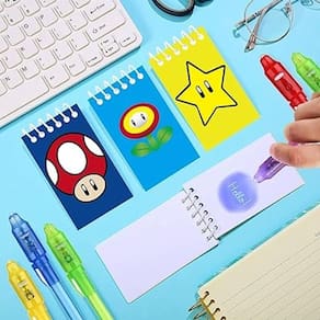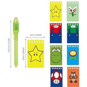 - Inclui 12 canetas de tinta invisíveis com luz ultravioleta e 12 mini blocos de notas Super Bros (2,4 polegadas x 4 polegadas)